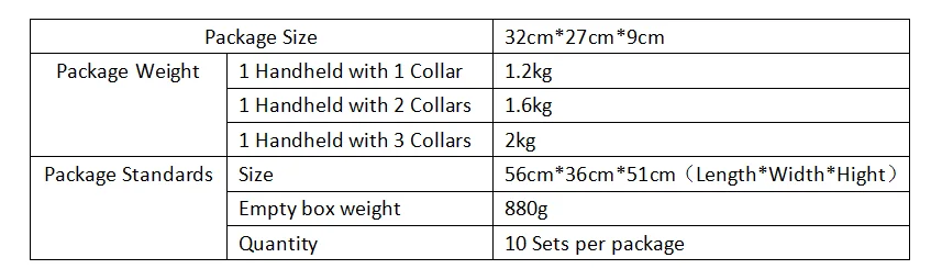 Screen Size: Handheld Unit:165*65*33(mm)/Collar Device:86*49*45
